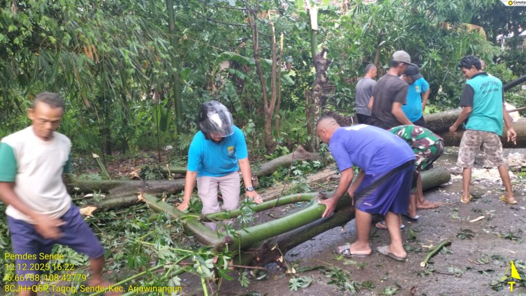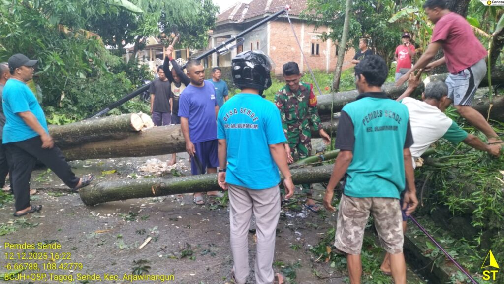 Kegiatan ini dilakukan pasca terjadinya hujan angin pada siang hari yang menyebabkan sebuah pohon tumbang dan menghalangi akses jalan dari RT/RW 003/004 menuju RT/RW 003/005 Desa Sende.