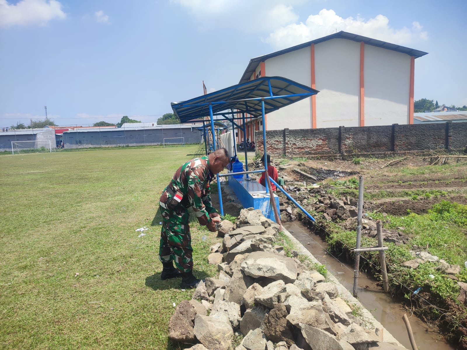 Plumbon, Rabu 29 Oktober 2025 – Dalam rangka meningkatkan kepedulian terhadap kebersihan dan kenyamanan lingkungan, Serma (K) Babinsa Desa Pamijahan, Koramil 0620-07/Plumbon, bersama masyarakat Desa Pamijahan, Kecamatan Plumbon, melaksanakan kegiatan gotong royong kerja bakti pembuatan saluran air dan senderan di wilayah binaannya.