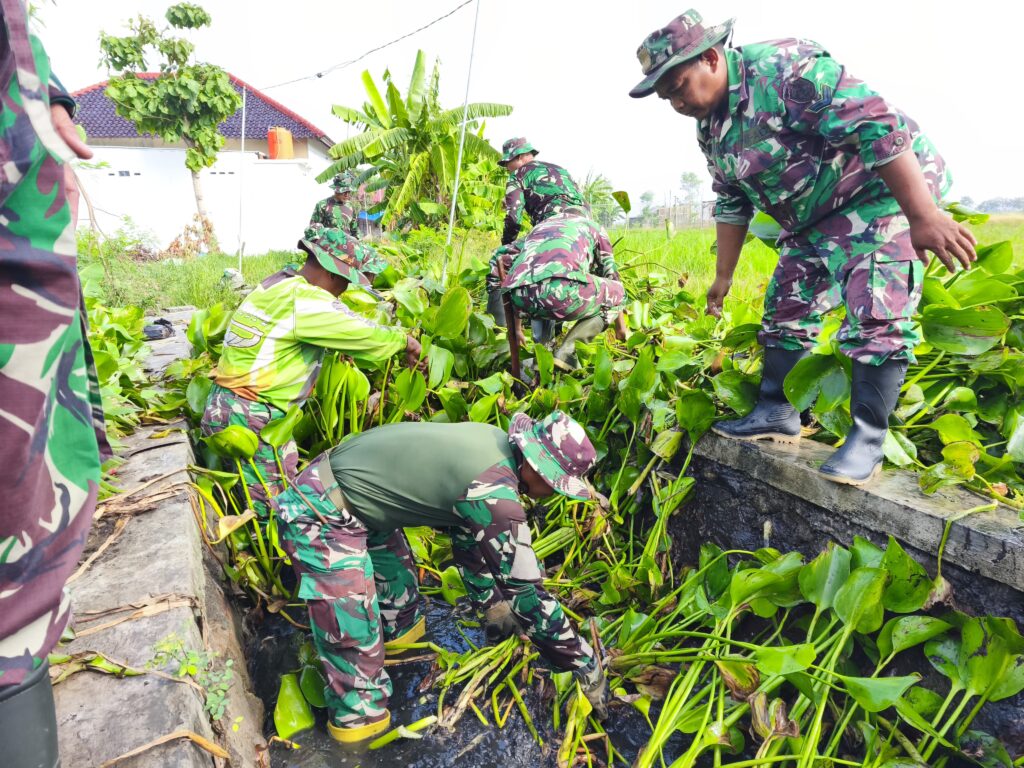 Kegiatan yang mengusung tema “Bersatu dengan Alam” ini menjadi bagian dari komitmen TNI dalam menjaga kelestarian lingkungan sekaligus memastikan kelancaran aliran irigasi yang selama ini terganggu oleh tumbuhan eceng gondok dan tumpukan sampah organik.