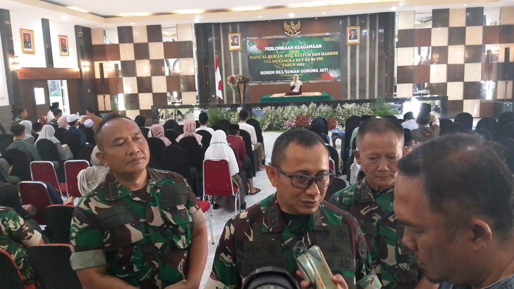 Pendim, Kota Cirebon, (Jum’at, 26/9/2025), – Dalam rangka memperingati Hari Ulang Tahun (HUT) ke-80 Tentara Nasional Indonesia (TNI) tahun 2025, Makorem 063/Sunan Gunung Jati (SGJ) menggelar perlombaan keagamaan yang meliputi Hafiz Al-Qur’an, Musabaqah Tilawatil Qur’an (MTQ), Kultum, dan Hadroh. Kegiatan tersebut berlangsung di Aula Sunan Gunung Jati Makorem 063/SGJ, Jl. Brigjen Dharsono By Pass, Kelurahan Sunyaragi, Kecamatan Kesambi, Kota Cirebon.