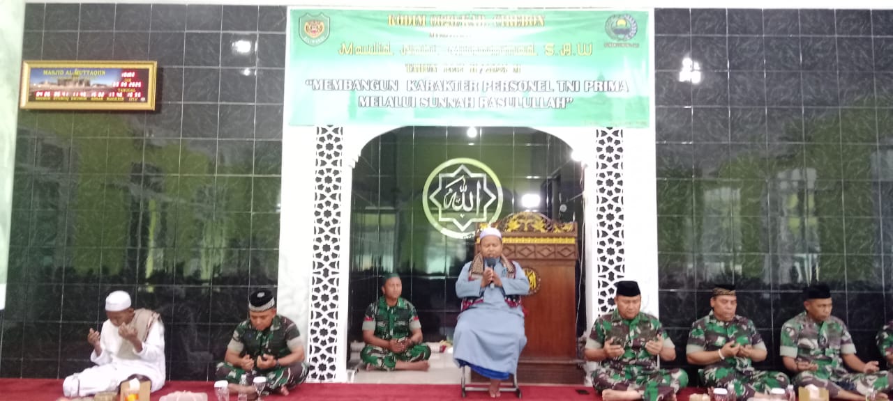 Mengusung tema “Membangun Karakter TNI Prima Melalui Sunnah Rasulullah”, kegiatan ini bertujuan untuk meneladani akhlak dan perjuangan Nabi Muhammad SAW dalam kehidupan sehari-hari, khususnya dalam membentuk karakter prajurit yang beriman, berakhlak mulia, dan tangguh dalam menjalankan tugas negara.