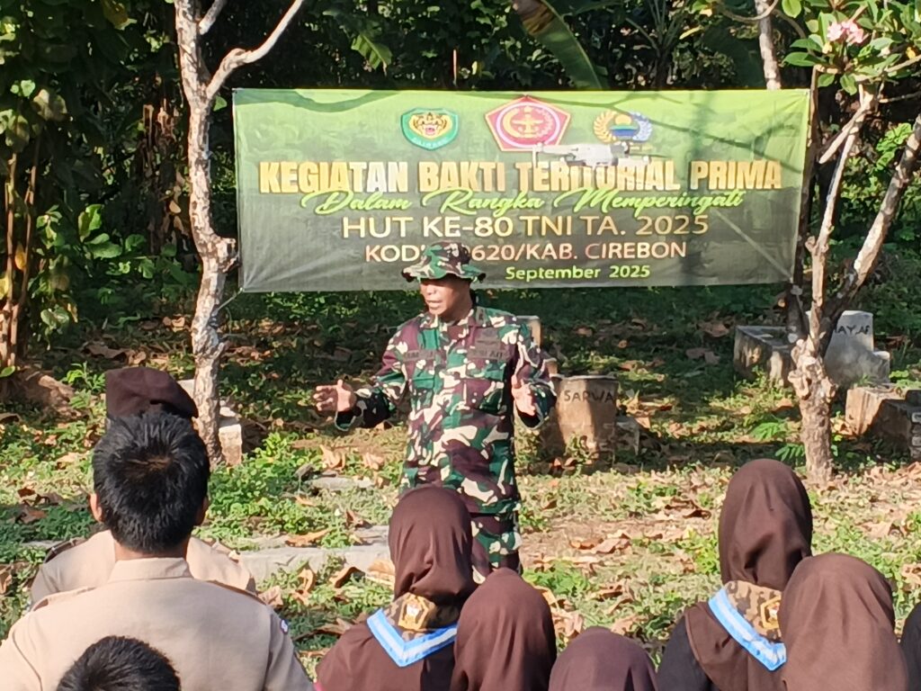Lemahabang, 9 September 2025 – Dalam rangka memperingati Hari Ulang Tahun (HUT) ke-80 Tentara Nasional Indonesia Angkatan Darat (TNI AD) tahun 2025, Kodim 0620/Kabupaten Cirebon melaksanakan kegiatan Bakti Teritorial Prima dengan melakukan pembersihan di Taman Makam Pahlawan (TMP) Sirnalaya, yang berlokasi di Desa Cipejeuh Wetan, Kecamatan Lemahabang, Kabupaten Cirebon.